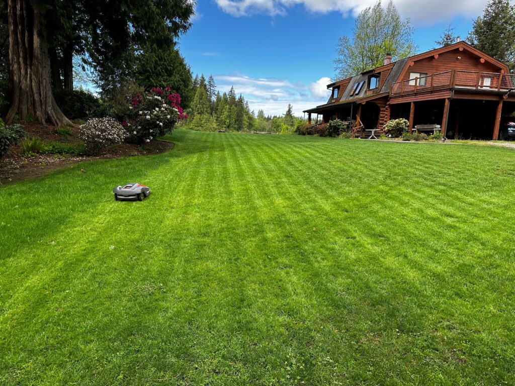 One of our clients, a Bellingham homeowner who had been meticulous about her lawn for years and held us to the highest standard, converted to the Automower program and noticed the difference within a few months. The evenness of the cut, the absence of any clippings, the fact that she almost never needed to call us anymore. Her lawn just ran. (Testimonial quote coming — reach out to client before publishing.)
